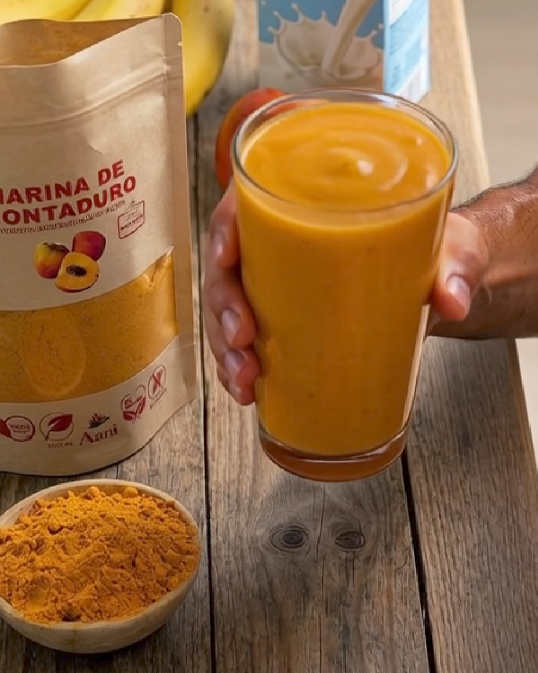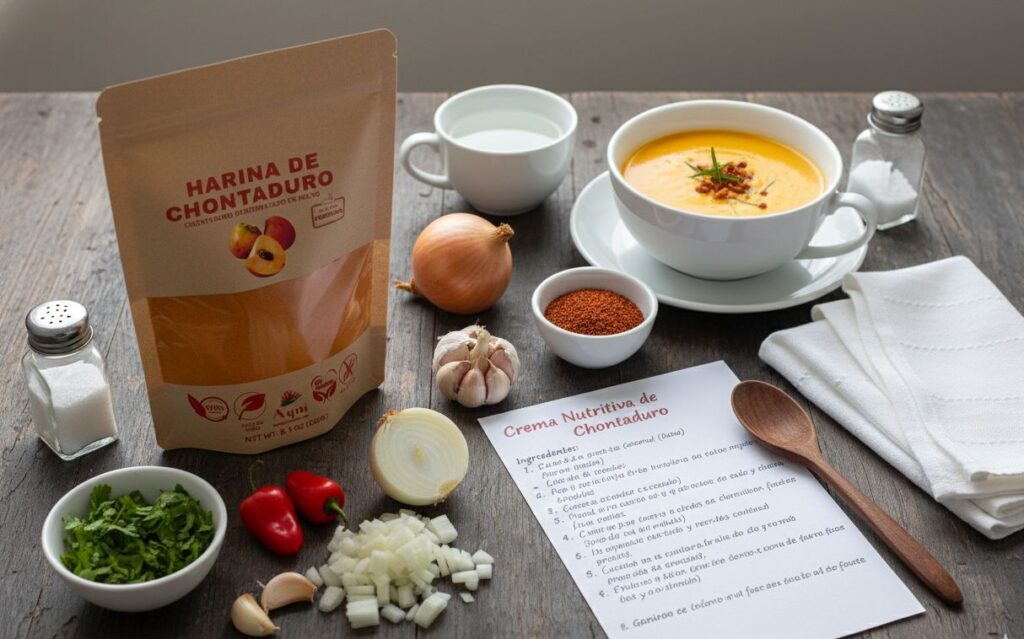 15 GRAMOS (UNA CUCHARADA) DE HARINA DE CHONTADURO 1 VASO DE LECHE O AGUA NUEZ MOSCADA Y CANELA MOLIDA AL GUSTO AZUCAR O ENDULZANTE DIETÉTICO AL GUSTO
